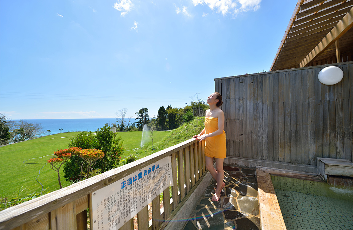 Filtered by medicinal maifanseki,the mineral ingredients gushing out will be geentle on the skin. An open air bath with a view of Mt.Kinka. Relax the indoor bath with a plenty of hot water.