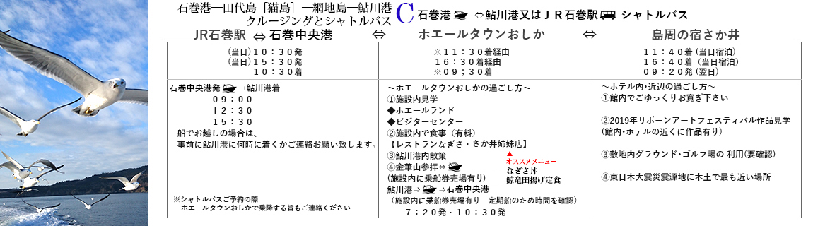 Click here for the details and the time table for [Ayukawa port to Kinkasan]